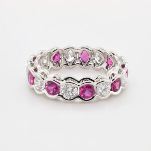 This band has rubies and diamonds in a wirework frame.