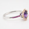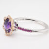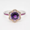 Described as lily pads since the diamonds resemble one.Lily Pad Ring with amethyst surrounded by medium pink sapphires and diamonds on the shank.