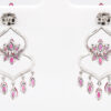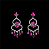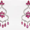 These earrings resemble ruby flowers on an open spade of diamonds with drop of ruby chandeliers.